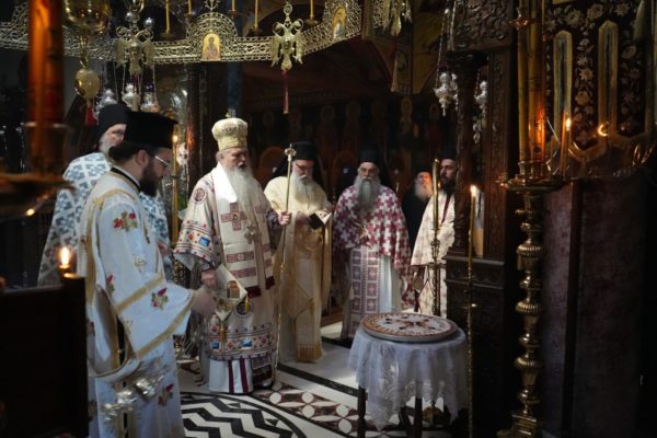 Παρέστησαν επίσης οι Σεβασμιώτατοι Μητροπολίτες Μεσογαίας κ. Νικόλαος, Νεαπόλεως κ. Βαρνάβας, Φθιώτιδος κ. Συμεών, Σισανίου κ. Αθανάσιος, Θεσσαλονίκης κ. Φιλόθεος και Καστορίας κ. Καλλίνικος, ενώ εκπροσωπήθηκαν οι Σεβ. Μητροπολίτες Κυδωνίας κ. Δαμασκηνός, Καλαβρύτων κ. Ιερώνυμος και ο Θεοφιλέστατος Επίσκοπος Ευμενείας κ. Ειρηναίος.