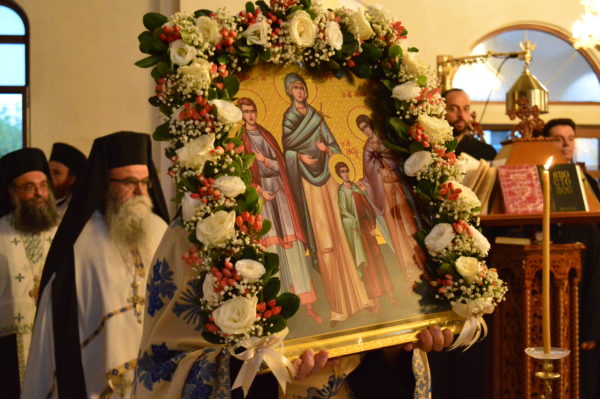Ακολούθως αναφέρθηκε στο μαρτύριο των εορταζομένων Αγίων και τέλος ευχαρίστησε τον Σεβασμιώτατο Μητροπολίτη Κοζάνης κ. Παύλο, ο οποίος επί σειρά ετών μετέχει ανελλιπώς στην πανήγυρη. Στο κήρυγμα του ο Μητροπολίτης Κοζάνης αναφέρθηκε στην πυρκαγιά της Αλεξανδρούπολης και την θαυμαστή διάσωση της Ιεράς Μονής Τιμίου Προδρόμου, από την οποία πέρασε μέσα η φωτιά και δεν άγγιξε κανένα κτίσμα. Θαύμα του Θεού το οποίο μπορούν να το δουν μόνο όσοι έχουν ανοιχτούς τους οφθαλμούς της πίστεως. Σήμερα, τόνισε, εξέλιπε δυστυχώς η πίστη των πολλών. Οι καταστροφές στην κτίση του Θεού μαρτυρούν την αποστασία των ανθρώπων από το Θεό και την περιφρόνηση του Θεού. Θεός δεν ακούγεται πουθενά ούτε και στην Ελλάδα, η οποία τρέχει πίσω από την άθεη Ευρώπη.