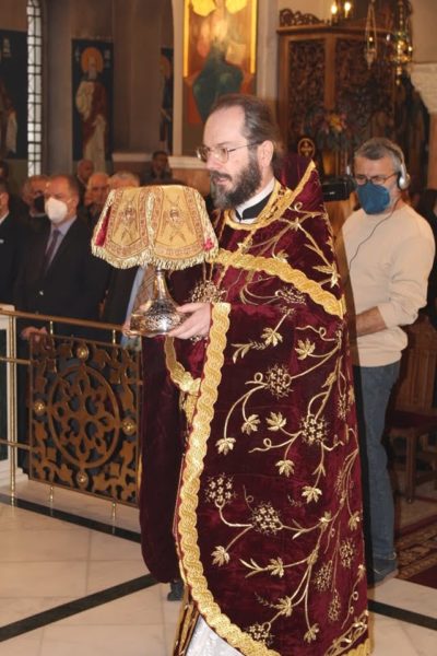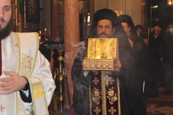 Την Κυριακή 26 Δεκεμβρίου 2021 τελέσθηκε ο Πανηγυρικός Εσπερινός χοροστατούντος του Σεβ. Μητροπολίτου Εδέσσης, Πέλλης και Αλμωπίας κ. Ιωήλ. Κατά την έναρξη του Εσπερινού πραγματοποιήθηκε η υποδοχή των ιερών λειψάνων των Αγίων Κοσμά και Δαμιανού, τα οποία μετέφερε εκ του Ι. Καθεδρικού Ναού Αγίας Σκέπης Εδέσσης ο Αρχιμ. Χριστόδουλος Καραγιάννης, Προϊστάμενος του εν λόγω ναού. Στην ιερά ακολουθία μετείχε ο εορτάζων Πρωτοσύγκελλος της Ι. Μητροπόλεως Αρχιμ. Στέφανος Δέβρελης, ο Αρχιερατικός Επίτροπος Σκύδρας και άλλοι κληρικοί της Ι. Μητροπόλεως.
