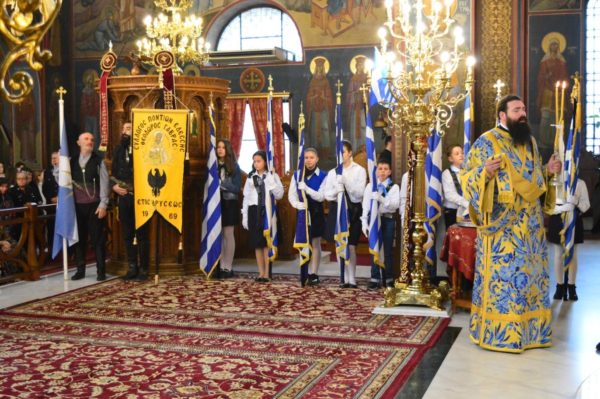 Μετά την Δοξολογία ο Σεβασμιώτατος τέλεσε την Επιμνημόσυνο Δέηση στο Ηρώο της πόλεως και παρακολούθησε την καθιερωμένη Παρέλαση.
