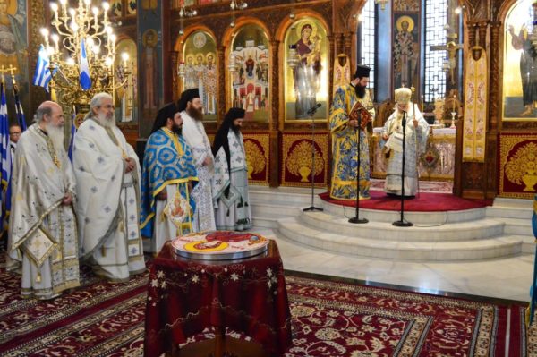 Τον θείο λόγο κήρυξε ο Αρχιμανδρίτης π. Παντελεήμων Καραλάζος τονίζοντας ότι, αφού ο Θεός είναι αγάπη, το νόημα της ζωής βρίσκεται στην αγάπη. Και ο άνθρωπος που αγάπησε περισσότερο από όλους τους άλλους ανθρώπους είναι η Παναγία. Με την αγάπη Της κατέβασε τον Θεό στην γη, ενώ συντρέχει όλους τους ανθρώπους σε κάθε ανάγκη και ιδιαίτερα τον λαό μας. Ας εμπνεόμαστε από το παράδειγμά της, κατέληξε, και ας επικαλούμεθα την βοήθειά Της, για να έχουμε την ευλογία Της ως πρόσωπα και ως Έθνος.