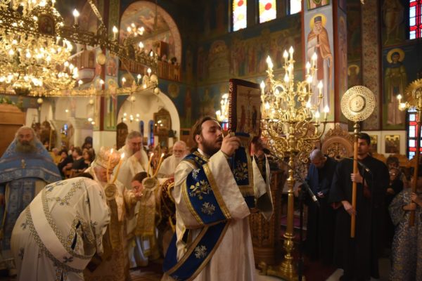 Οι εόρτιες ακολουθίες ξεκίνησαν το απόγευμα της Κυριακής 25 Ιουνίου με την υποδοχή της Ιεράς εφεστίου εικόνας του Μητροπολιτικού οικήματος, της «Παναγίας της Ελεούσης». Μεγάλος αριθμός πιστών παρευρέθηκε στην υποδοχή της πανσέπτου εικόνας, η οποία χρονολογείται στο δεύτερο μισό του 17ου αιώνα (έργο Ιωάννου ιερομονάχου). Αποτελεί ιερό κειμήλιο της Μητροπόλεώς μας και θεωρείται η σκέπη και προστασία της. Όσοι προστρέχουν σ’ αυτήν με ευλάβεια «αἰτοῦντες τὴν πληθύν τῶν χαρίτων Της» λαμβάνουν το μέγα και πλούσιον έλεος του Κυρίου.