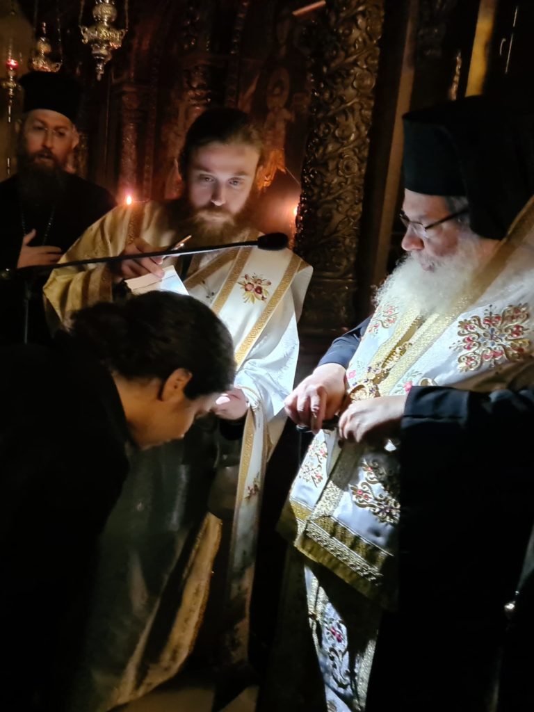 Ο Σεβασμιώτατος Μητροπολίτης Εδέσσης, Πέλλης και Αλμωπίας κ. Ιωήλ τέλεσε την μοναχική κουρά (ρασοευχή) της αδελφής Αρσενίας (κατά κόσμον Ελένης Κυριακού, πτυχιούχου Μαθηματικής Σχολής του Α.Π.Θ.) στην Ιερά Μονή Αγίου Ιλαρίωνος Προμάχων Αριδαίας κατά την διάρκεια του Μεγάλου Αποδείπνου την Τρίτη 13 Απριλίου 2021.