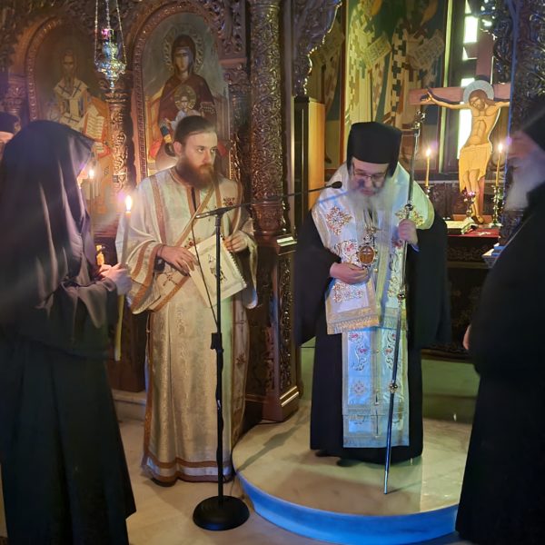 Στην σύντομη προσφώνησή του ο Σεβασμιώτατος χαρακτήρισε την χαρά της μοναχικής κουράς ως ευχάριστη ανάπαυλα στο πέλαγος της νηστείας, ανάλογη με την χαρμόσυνη παρεμβολή της ακολουθίας των Χαιρετισμών της Θεοτόκου. Συνέστησε επίσης στην νέα μοναχή να αγωνίζεται με πνευματική εγρήγορση και με την στήριξη του πνευματικού της πατρός, Αρχιμ. Παϊσίου, και της αδελφότητος.