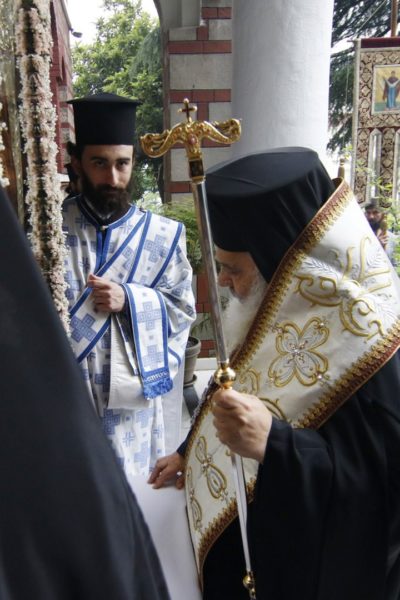 Στα εξώθυρα του Μητροπολιτικού Οικήματος υποδέχθηκε την περίσεπτο Εικόνα ο Σεβασμιώτατος Μητροπολίτης Εδέσσης, Πέλλης και Αλμωπίας κ. Ιωήλ, ο οποίος έκανε εκεί την Απόλυση του Εσπερινού.