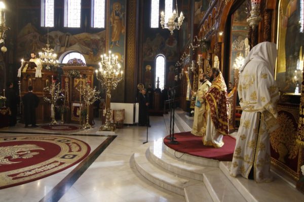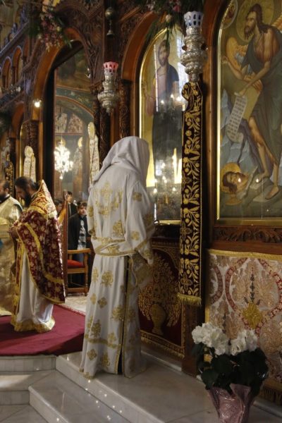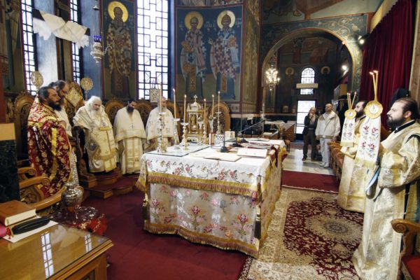 Με τον Σεβασμιώτατο συλλειτούργησαν ο Πρωτοσύγκελλος της Ιεράς Μητροπόλεως, ο Ιεροκήρυξ της Ιεράς Μητροπόλεως, Αρχιμανδρίτης Παντελεήμων Καραλάζος, ο Γενικός Αρχιερατικός Επίτροπος, Πρωτοπρεσβύτερος Γεώργιος Ζουμής, ο Προϊστάμενος του Ιερού Καθεδρικού Ναού, Αρχιμανδρίτης Χριστόδουλος Καραγιάννης, ο Αρχιδιάκονος της Ιεράς Μητροπόλεως, Θεόφιλος Γαργάλας, και ο Διάκονος Ιωάννης Γκερτσάκης. Ο π. Ευθύμιος θα διακονεί στον Ιερό Καθεδρικό Ναό της Αγίας Σκέπης.