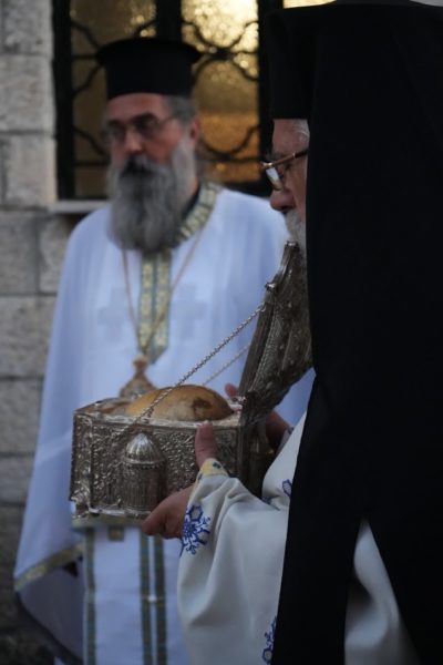 Γι᾿ αυτό και δοξάζουμε τον Θεό και τιμούμε την Παναγία μητέρα Του. Ακολούθησε η καθιερωμένη λιτάνευση της ιεράς εικόνος της Κοιμήσεως της Θεοτόκου και της τιμίας και χαριτοβρύτου κάρας της αγίας νεομάρτυρος Ελένης της εκ Σινώπης, η οποία μεταφέρθηκε από τον ιερό ναό Αγ. Μαρίνης Θεσσαλονίκης με την ευλογία του Σεβ. Μητροπολίτου Θεσσαλονίκης κ. Φιλοθέου για την διάρκεια του εορτασμού.