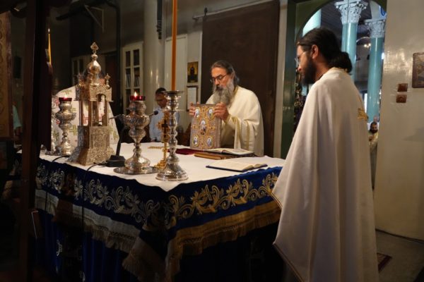 Την παραμονή της εορτής, στις 7.00 μ.μ., τελέσθηκε ο Πανηγυρικός Εσπερινός προεξάρχοντος του Πανοσιολογιωτάτου Αρχιμ. Ισιδώρου Κυριάζου. Τον θείο λόγο κήρυξε ο ιεροκήρυκας της Ι. Μητροπόλεως Αρχιμανδρίτης Χρυσόστομος Πλίσκας, ο οποίος εξήρε το γεγονός ότι στο πρόσωπο της Θεοτόκου νικήθηκαν οι όροι της φύσεως. Έγινε μητέρα, ενώ παρέμεινε παρθένος.