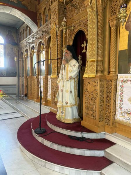 Στο κήρυγμά του αναφέρθηκε στο Ευαγγέλιο της ημέρας, όπου περιγράφεται πώς οι απλοί ψαράδες ανταποκρίθηκαν σε έναν λόγο του Χριστού, τα εγκατέλειψαν όλα και Τον ακολούθησαν. Επισήμανε ότι οι Απόστολοι του Χριστού μετέδωσαν τον λόγο του Θεού με εργατικότητα και φιλότιμο. Επίσης, ο Θεοφιλέστατος υπογράμμισε την αξία του εκκλησιασμού, ενώ προέτρεψε στο ενδιαφέρον για τον πλησίον χωρίς κατάκριση, αλλά με απλότητα και ταπείνωση.