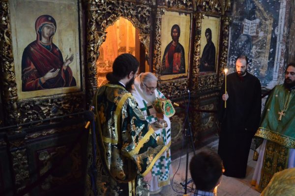 O Μητροπολίτης Εδέσσης, Πέλλης και Αλμωπίας κ. Ιωήλ λειτούργησε στον ιστορικό ιερό ναό Κοιμήσεως της Θεοτόκου Εδέσσης (Παλαιά Μητρόπολη), ένα μνημείο του 14ου αιώνος, tην Κυριακή των Βαΐων, 17 Απριλίου.