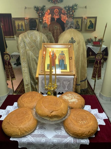 Το απόγευμα της Δευτέρας 12 Φεβρουαρίου τελέσθηκε πανηγυρικός Εσπερινός με αρτοκλασία. Το θείο λόγο κήρυξε ο Αρχιμανδρίτης Παντελεήμων Καραλάζος, ιεροκήρυκας της Ιεράς Μητροπόλεως Εδέσσης, Πέλλης και Αλμωπίας.