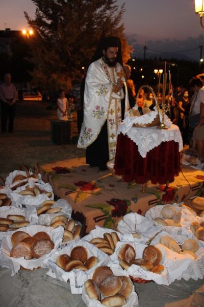 Κατά το πέρας του Εσπερινού πραγματοποιήθηκε λιτάνευση της ιστορικής εικόνος της Κοιμήσεως της Θεοτόκου γύρω από τον ναό και η καθιερωμένη ευλόγησις των άρτων στο προαύλιο. Στις 22.00 τελέσθηκε το Μικρό Απόδειπνο με τα Εγκώμια της Κοιμήσεως της Θεοτόκου.