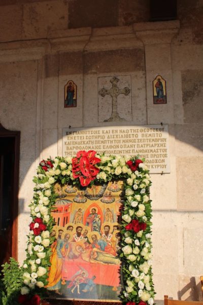 Την παραμονή της εορτής (19.00) πραγματοποιήθηκε η υποδοχή της τιμίας κάρας του Αγίου Καλλινίκου, την οποία μετέφερε ο Αρχιμ. Χριστόδουλος Καραγιάννης, Προϊστάμενος του Ι. Καθεδρικού Ναού Αγ. Σκέπης Εδέσσης, από το Μητροπολιτικό οίκημα όπου φυλάσσεται και στην συνέχεια τελέσθηκε ο Μέγας Εσπερινός. Τον θείο λόγο κήρυξε ο Αρχιμ. Νικόδημος Κανσίζογλου, ιεροκήρυκας της Ι. Μητροπόλεως, ο οποίος τόνισε ότι η Θεοτόκος είναι η μεγάλη εγγυήτριά μας· και για τις δύσκολες περιστάσεις του βίου όσο και για την μετάνοια και την σωτηρία των ανθρώπων. Προέτρεψε δε να ενώσουμε όλοι της προσευχές μας προκειμένου να ζητήσουμε από την Παναγία να εγγυηθεί για την αγάπη και την ομόνοια μεταξύ μας, την οποία έχει μεγάλη ανάγκη σήμερα η Εκκλησία και η κοινωνία μας.