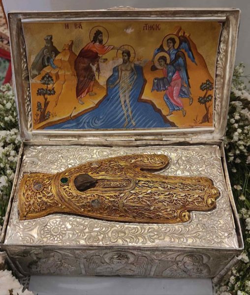 Με κατάνυξη, ιεροπρέπεια και μεγάλη συμμετοχή των πιστών της πόλεως και της περιοχής πραγματοποιήθηκε το απόγευμα της Παρασκευής του Ακαθίστου Ύμνου, 6ης Απριλίου, η Υποδοχή της Αγίας Χειρός του Τιμίου Ενδόξου Προφήτου Προδρόμου και Βαπτιστού Ιωάννου από την Ιερά Σκήτη Τιμίου Προδρόμου Βέροιας στον ιερό ενοριακό ναό Αγίων Κωνσταντίνου και Ελένης Γιαννιτσών. Μετά την Υποδοχή τελέσθηκε η ιερά ακολουθία του Ακαθίστου Ύμνου.