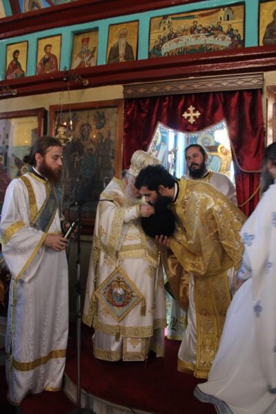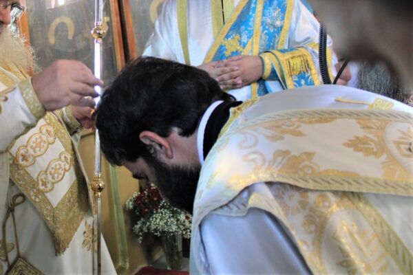 Ο Σεβασμιώτατος προσφωνώντας τον χειροτονούμενο τον επαίνεσε για την βαθιά του ευλάβεια και την ταπείνωσή του και τον παρότρυνε να είναι καθημερινά συνεπέστατος στις ακολουθίες του και να αγαπά εξ ίσου όλους τους ενορίτες του ως εικόνες του Θεού. Του ευχήθηκε επίσης να αναπαύσει τους ενορίτες του και ο ίδιος να αναπαυθεί με αυτούς.