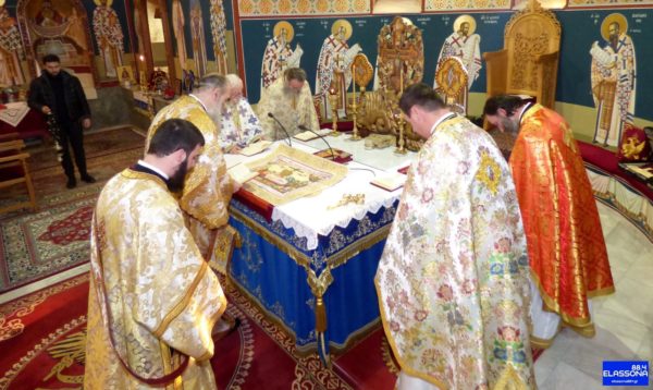 Το πρωί της Κυριακής πραγματοποιήθηκε Αρχιερατική Θεία Λειτουργία Χοροστατούντος του Σεβασμιοτάτου Μητροπολίτου Ελασσόνας κ. Χαρίτωνα, ενώ συλλειτούργησαν μαζί οι πρωτοπρεσβύτεροι, π. Γεώργιος Κοντοτάσιος, π.Αλέξανδρος Νεζεριώτης. π. Χρήστος Γεροφάκας, π. Αθανάσιος Αποστόλου και ο διάκονος π. Σπυρίδων Σταμούλης.