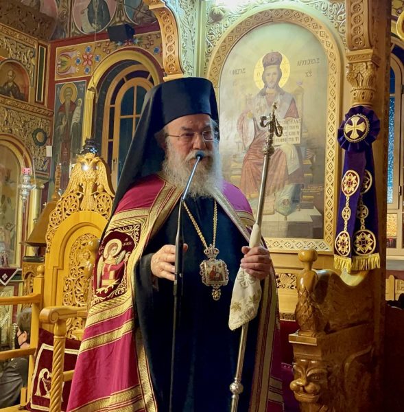 Πριν το τέλος της ακολουθίας μίλησε προς το ευσεβές Εκκλησίασμα της κωμοπόλεως με θέμα, η Παναγία το καταφύγιο των χριστιανών.