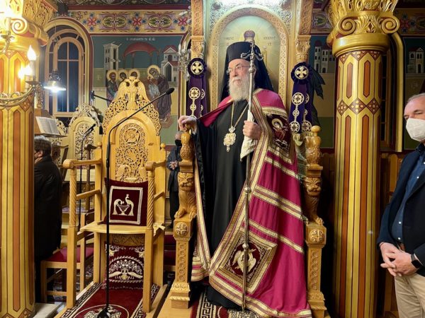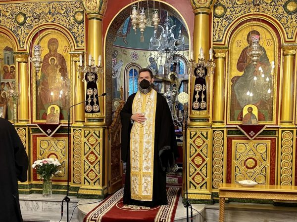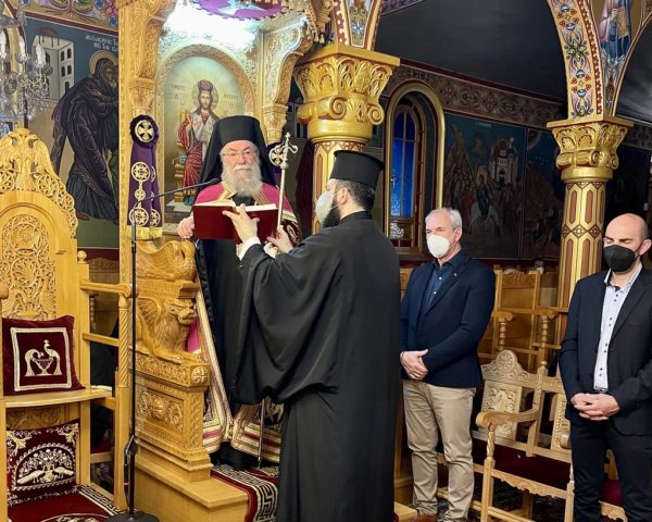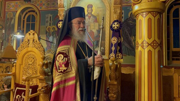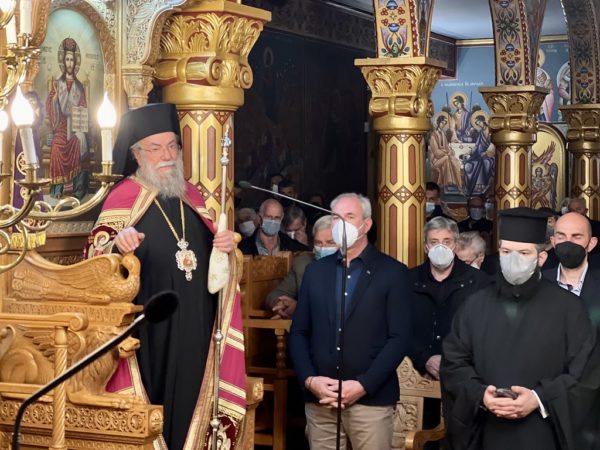 Πριν το τέλος της ακολουθίας μίλησε προς το ευσεβές Εκκλησίασμα της κωμοπόλεως με θέμα, η Παναγία το καταφύγιο των χριστιανών.
