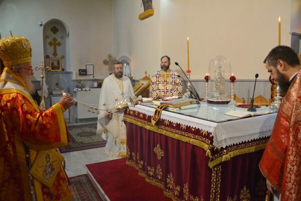 Την κυριώνυμο ημέρα στον εορτάζοντα Ιερό Ναό τελέστηκε με λαμπρότητα και την παρουσία πλήθους πιστών, Πανηγυρική Θεία Λειτουργία ιερουργούντος του Σεβασμιωτάτου Μητροπολίτου κ. Χρυσοστόμου πλαισιουμένου από τον ιερό κλήρο της Μητροπόλεως προεξάρχοντος του Πρωτοσυγκέλλου της Μητροπόλεως Αρχιμανδρίτου π. Χρυσοστόμου Μπένου.