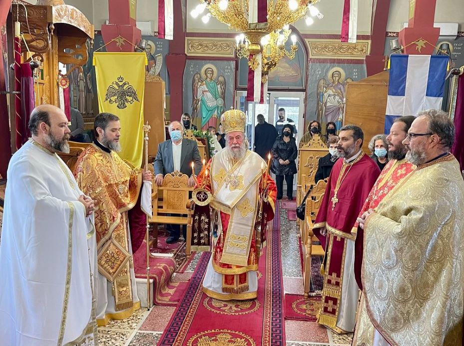 Ο Σεβασμιώτατος πλαισιώθηκε από ιερείς της Μητρόπολης με επικεφαλής τον Πρωτοσύγκελλο της Μητρόπολης Αρχιμανδρίτη Χρυσόστομο Μπένο.