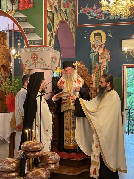 Την κυριώνυμο ημέρα της εορτής, Τρίτη 26 Ιουλίου, τελέσθηκε πανηγυρικό Συλλείτουργο προεξάρχοντος του Αρχιμ. Κωνσταντίνου Σκαρτούλη Γενικού Αρχιερατικού της Ιεράς Μητροπόλεως Περιστερίου.