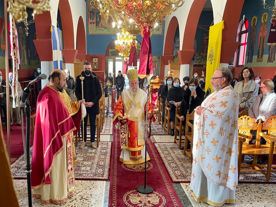 Την κυριώνυμο ημέρα της εορτής, Κυριακή 4 Δεκεμβρίου 2022, ο Σεβασμιώτατος Μητροπολίτης Ελευθερουπόλεως κ. Χρυσόστομος τέλεσε τη Θεία Λειτουργία στον εν λόγω Ιερό Ναό πλαισιωμένος υπό του Πρωτοσυγκέλλου της Μητροπόλεως Αρχιμανδρίτη Χρυσοστόμου Μπένου, του Εφημερίου της ενορίας π. Κωνσταντίνου Λουλούδη, του π. Παύλου Κυπραίου και του Διακόνου της Μητροπόλεως π. Αθανασίου Γουσίδη και τη συμμετοχή των κατοίκων του χωριού που προσήλθαν να ζητήσουν τις πρεσβείες της εορταζομένης Αγίας.