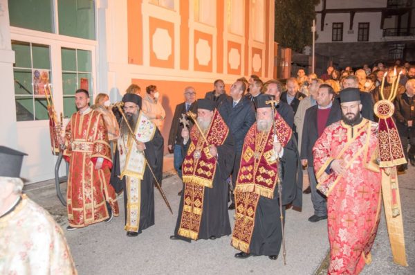 Την κυριώνυμο ημέρα της εορτής ετελέσθη Πανηγυρικό Αρχιερατικό Συλλείτουργο, ιερουργούντων των Σεβασμιωτάτων Μητροπολιτών Φιλίππων, Νεαπόλεως και Θάσου κ. Στεφάνου, Κωνσυαντιανής κ. Κοσμά και του Ποιμενάρχου κ. Χρυσοστόμου, πλαισιωμένων υπό Ιερέων της Μητροπόλεως, εν μέσω πυκνοτάτου εκκλησιάσματος.