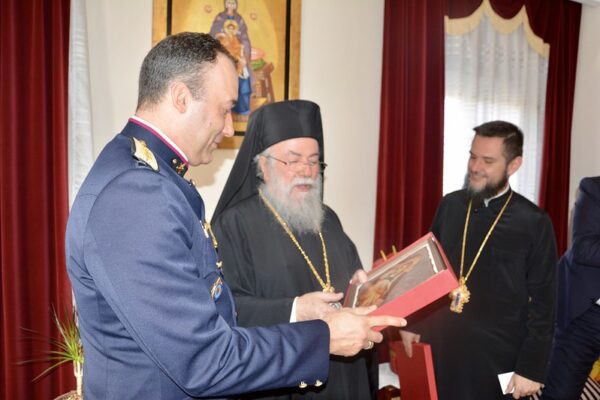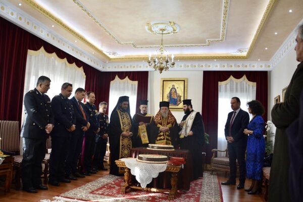 Εν συνεχεία, όπως κάθε χρόνο όλοι, Αρχές και λαός μετέβησαν στο Επισκοπείο της πόλεως, όπου ο Σεβασμιώτατος ευλόγησε την Πρωτοχρονιάτικη Βασιλόπιτα και ευχήθηκε τα δέοντα στους παρισταμένους. Το κομμάτι με το φλουρί έπεσε στον Διοικητή της Στρατιωτικής Μονάδας MLRS Ελευθερούπολης Αντισυνταγματάρχη κ. Ηλία Πέττα, στον οποίο ως δώρο έδωσε ο Σεβασμιώτατος ένα αντίγραφο τοιχογραφίας του «Αναπεσόντος» του Ναού στο Πρωτάτο του Αγίου Όρους.