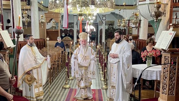 Το πρωί της 29ης Μαΐου 2022, Κυριακή του Τυφλού, ο Σεβασμιώτατος Μητροπολίτης κ. Χρυσόστομος τέλεσε τη Θεία Λειτουργία, στον ενοριακό Ιερό Ναό του Αγίου Γεωργίου Μεσορόπης, πλαισιωμένος από τον Πρωτοσύγκελλο της Μητροπόλεως Αρχιμανδρίτη Χρυσόστομο Μπένο, τον εφημέριο της ενορίας π. Χαράλαμπο Ζαπουνίδη και τον Διάκονο της Μητροπόλεως π. Αθανάσιο Γουσίδη.