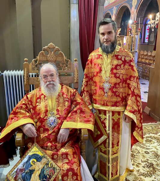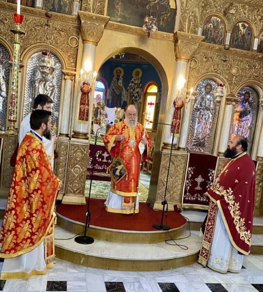 Πριν το τέλος της Θείας Λειτουργίας ο Σεβασμιώτατος τέλεσε τρισάγιο εις μνήμη του Μακαριστού Αρχιεπισκόπου Αθηνών κυρού Χριστοδούλου και του μακαριστού Μητροπολίτου Φλωρίνης κυρού Αυγουστίνου, με αφορμή την 16η επέτειο της εκλογής του εις Επίσκοπον.