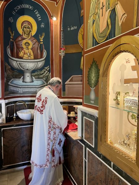 Ο Σεβασμιώτατος Μητροπολίτης Ελευθερουπόλεως κ. Χρυσόστομος ετέλεσε την Θεία Λειτουργία πλαισιωμένος από ιερείς της πόλης προεξάρχοντος του Πρωτοσυγκέλου της Μητροπόλεως Αρχιμανδρίτου Χρυσοστόμου Μπένου.