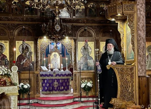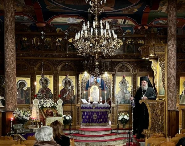 Τον Θείο Λόγο κήρυξε ο Σεβασμιώτατος πριν το τέλος της ακολουθίας αναλύοντας το πρώτο τροπάριο των αποστίχων της ακολουθίας του εσπερινού «Χαλινούς ἀποπτύσας τούς πατρικούς, ἀστάτῳ φρενί, τοῖς κτηνώδεσι τῆς ἁμαρτίας…».