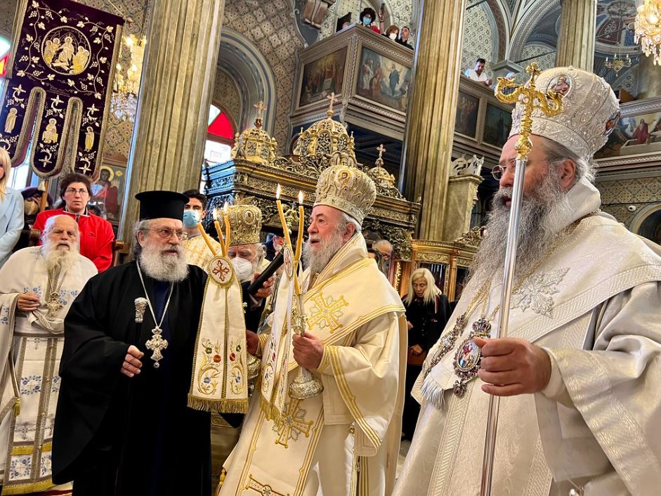 Το Σάββατο 7 Μαΐου, εσπέρας χοροστάτησε στον Πανηγυρικό Εσπερινό της εορτής, στον μεγαλοπρεπή Ιερό Ναό του Προσκυνήματος, συγχοροστατούντων των Σεβασμιωτάτων Μητροπολιτών Κίτρους κ. Γεωργίου και Μηθύμνης κ. Χρυσοστόμου.