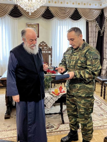 Προ της αναχωρήσεως του κ. Στρατηγού, ο Σεβασμιώτατος του προσέφερε τις νέες εκδόσεις της Μητροπόλεως και μια εικόνα της Παναγίας, ενώ με τη σειρά του ο Στρατηγός του επέδωσε τιμητική πλακέτα της ΧΧ ΤΘ Μεραρχίας.