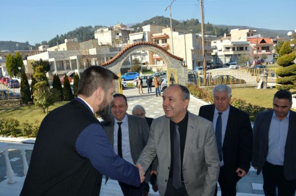 O κ. Καράογλου συνοδευόταν από τους Βουλευτές του Νομού Καβάλας κ. Ιωάννη Πασχαλίδη και κ. Μακάριο Λαζαρίδη, τον Δήμαρχο Παγγαίου κ. Φίλιππο Αναστασιάδη και ομάδα συνεργατών του.