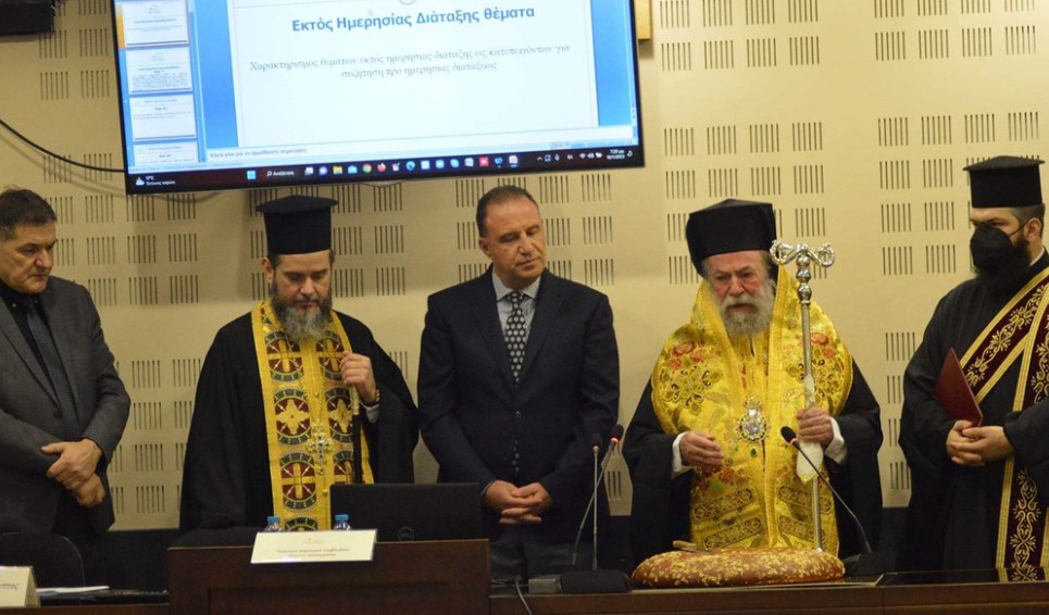 O Μητροπολίτης Ελευθερουπόλεως κ. Χρυσόστομος, στην Αίθουσα των συνεδριάσεων του Δήμου και πλαισιωμένος υπό τους Ιερείς της πόλης, ευλόγησε και έκοψε τη Βασιλόπιτα του Δημοτικού Συμβουλίου Παγγαίου, την Τετάρτη 18 Ιανουαρίου.