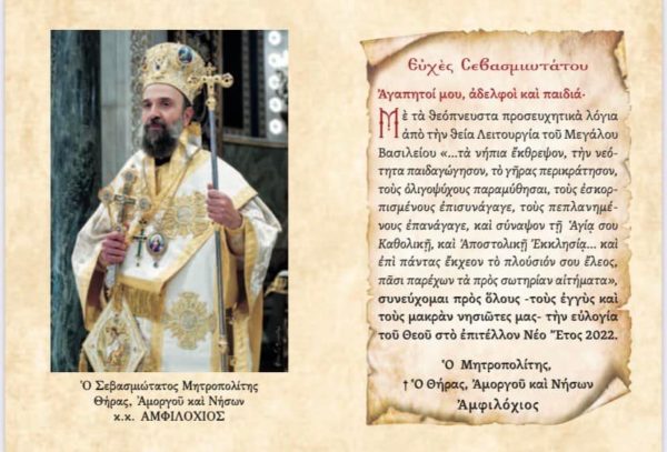 Στον προκάτοχό του Μητροπολίτη πρώην Θήρας, Αμοργού και Νήσων κ. Επιφάνιο αφιερώνει το ΕΟΡΤΟΛΟΓΙΟ ΤΟΥ ΕΤΟΥΣ 2022 της Ιεράς Μητροπόλεως που μόλις κυκλοφόρησε.