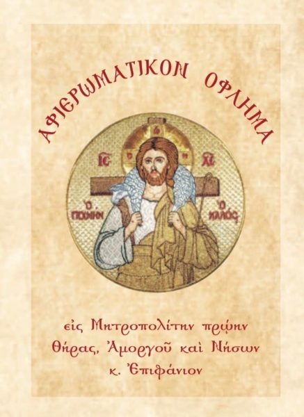Στον προκάτοχό του Μητροπολίτη πρώην Θήρας, Αμοργού και Νήσων κ. Επιφάνιο αφιερώνει το ΕΟΡΤΟΛΟΓΙΟ ΤΟΥ ΕΤΟΥΣ 2022 της Ιεράς Μητροπόλεως που μόλις κυκλοφόρησε.