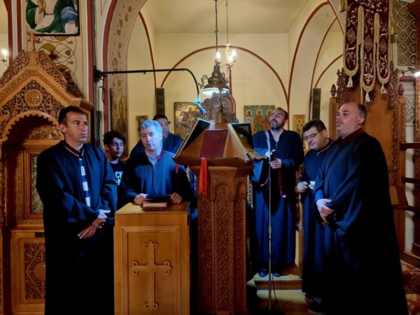 Στην ακολουθία έψαλλαν οι ιεροψάλτες του Ναού κ. Νικόλαος Βαρβαρήγος και Βασίλειος Ρούσσος βοηθούμενοι από αρκετούς ιεροψάλτες του νησιού αλλά και από μαθητές της Σχολής Βυζαντινής Μουσικής της Μητροπόλεως.