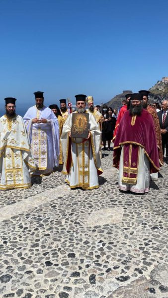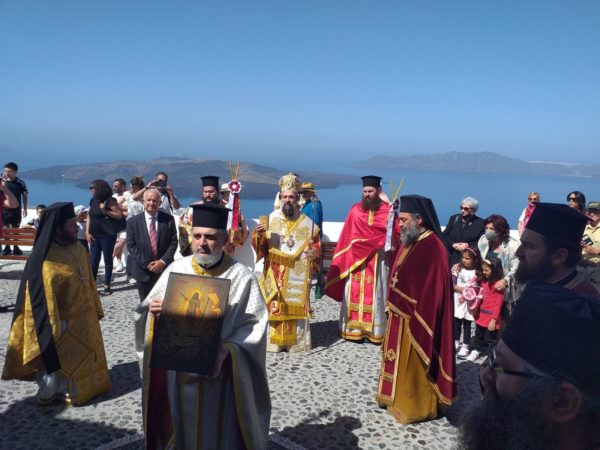 Την Κυριακή του Πάσχα 24 Απριλίου το πρωί ο Σεβασμιώτατος Μητροπολίτης Θήρας κ. Αμφιλόχιος χοροστάτησε στον Εσπερινό της Αγάπης στον Ιερό Μητροπολιτικό Ναό Υπαπαντής του Σωτήρος, κατά τον οποίο ακούστηκε το αναστάσιμο μήνυμα του Ευαγγελίου σε αρκετές γλώσσες.