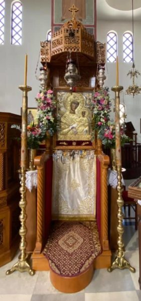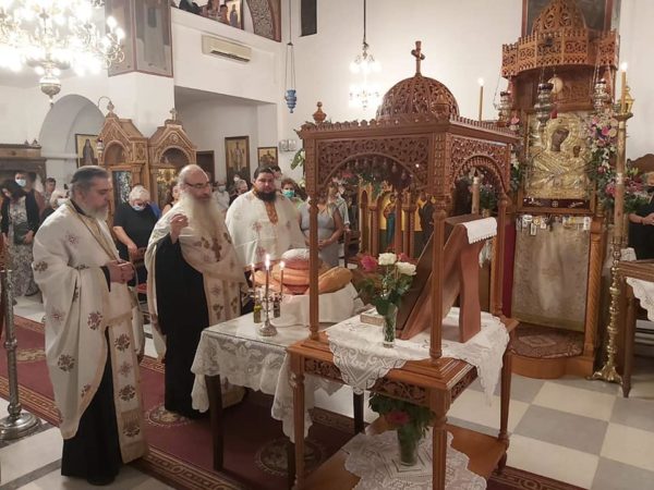 Πλήθος πιστών, τηρώντας τα ισχύοντα υγειονομικά μέτρα, προσήλθε για να λάβει τη χάρη της χαριτοβρύτου ιεράς εικόνος της Υπεραγίας Θεοτόκου της Κυρίας «Προυσιωτίσσης», ακριβές αντίγραφο της οποίας θησαυρίζεται στον Ιερό Ναό, και την ευλογία εκ των ιερών λειψάνων του Αγίου Νεκταρίου.