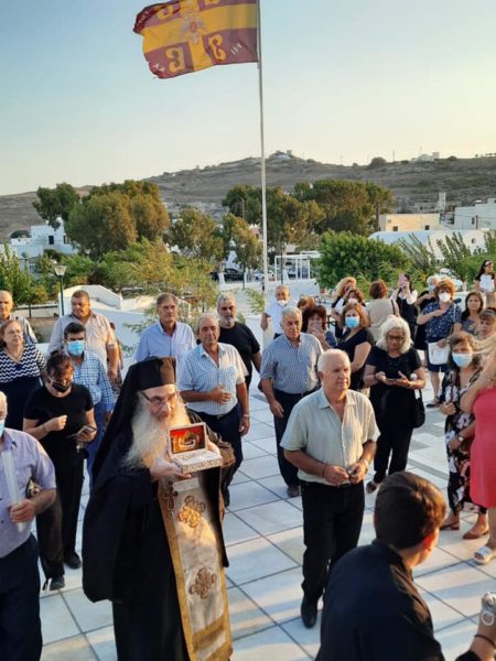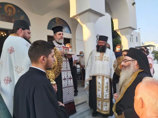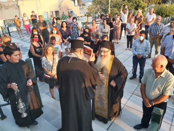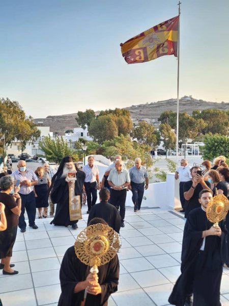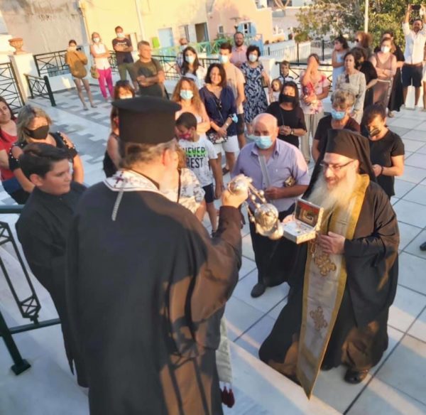 Τόσο η υποδοχή των ιερών λειψάνων όσο και οι ιερές ακολουθίες πραγματοποιήθηκαν με την ευλογία του -για ποιμαντικούς λόγους ευρισκομένου στην Αμοργό- Σεβασμιωτάτου Μητροπολίτου Θήρας, Αμοργού & Νήσων κ.κ. Επιφανίου.