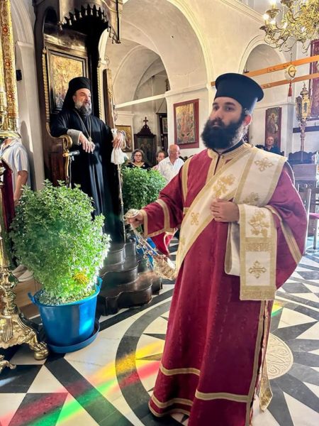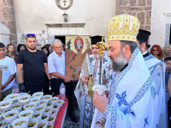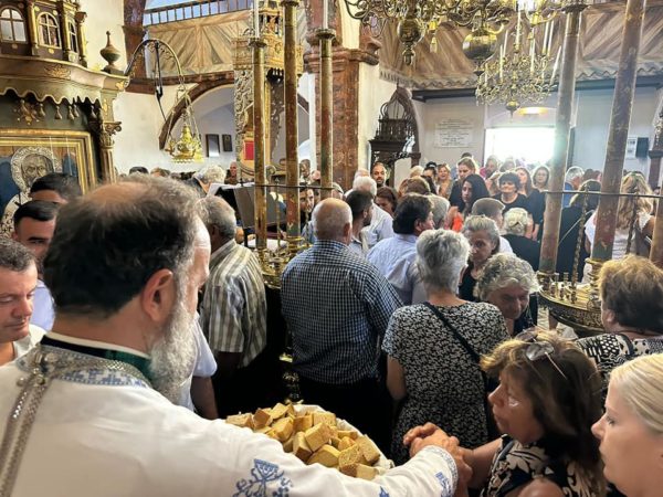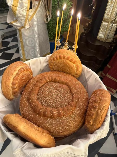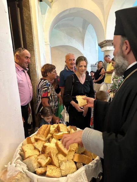 Προ του πέρατος της Θείας Λειτουργίας ευλογήθηκαν κατ’ έθος οι νέοι καρποί της αμπέλου και τα προσφερόμενα από τον Πολιτιστικό Σύλλογο Εμπορείου εδέσματα.