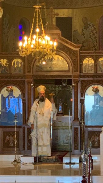 Κατά το κήρυγμά του ο Σεβασμιώτατος αναφέρθηκε στην ευαγγελική περικοπή η οποία αναφέρεται στο “Ὑμεῖς ἐστε τὸ φῶς τοῦ κόσμου”, τονίζοντας ότι μέσα από την τήρηση των εντολών του Κυρίου γινόμαστε φως φωτιζόμενοι από το αληθινό Φως, τον άγιο Θεό, και πως αυτό το φως στη συνέχεια γίνεται το πιο ισχυρό κήρυγμα καθώς εκπέμπεται και αντανακλάται στους γύρω μας ακόμα και χωρίς λόγια.