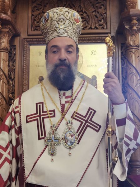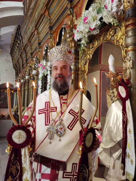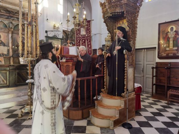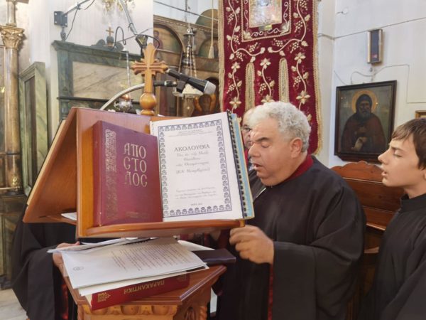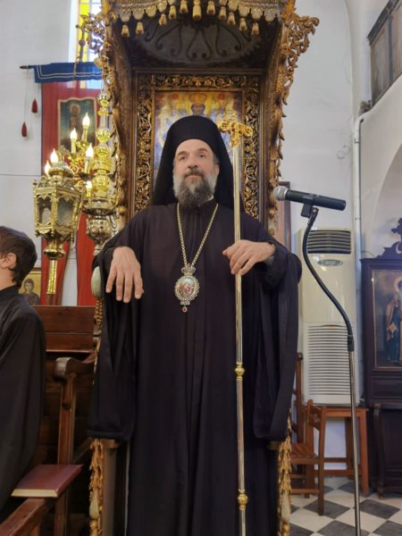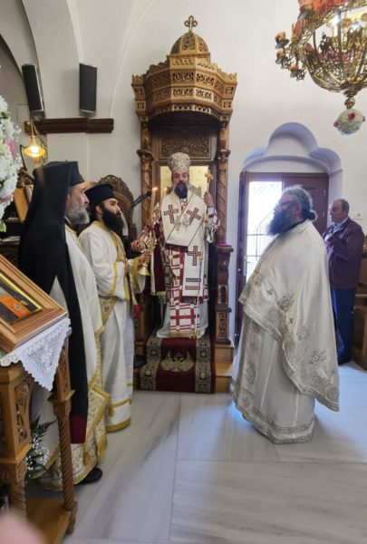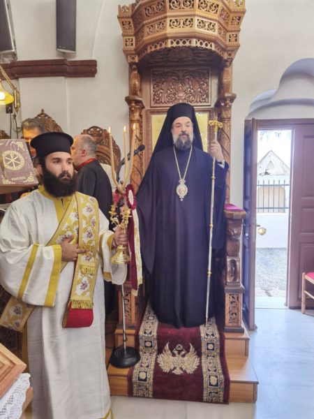 Την κυριώνυμο ημέρα χοροστάτησε του όρθρου και τέλεσε το μυστήριο της Θείας Λειτουργίας στον Ιερό Ναό Αγίας Θεοδοσίας Ακρωτηρίου.