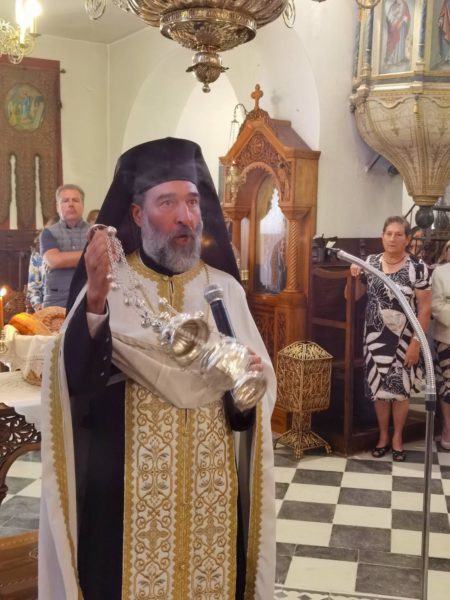 Ο Σεβασμιώτατος Μητροπολίτης Θήρας, Αμοργού και Νήσων κ. Αμφιλόχιος την παραμονή της εορτής χοροστάτησε του πανηγυρικού εσπερινού στον Ιερό Ναό Αγίας Θεοδοσίας Πύργου.