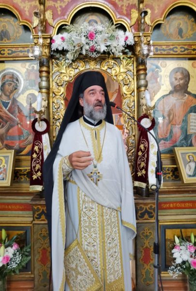 Την διακονία του λόγου ανέλαβε ο ιεροκήρυκας της Μητροπόλεως αρχιμ. Χριστοφόρος Καραμολέγκος, ο οποίος αναφέρθηκε στο νόημα της εορτής της Μεσοπεντηκοστής επικεντρώνοντας την ομιλία του στο Ευαγγελικό Ανάγνωσμα, το το οποίο παρουσιάζει τον Χριστός ως διδάσκαλο, τονιζοντας ότι ο Χριστός είναι η Σοφία και Λόγος του θεού και κατέληξε την ομιλία του με το συμπερασμα του Heisenberg για την επιστήμη: Ότι η πρώτη σταγονα στο ποτηρι της επιστημης σε κάνει αθεο ενω στη τελευταια κρυβεται ο Θεός.