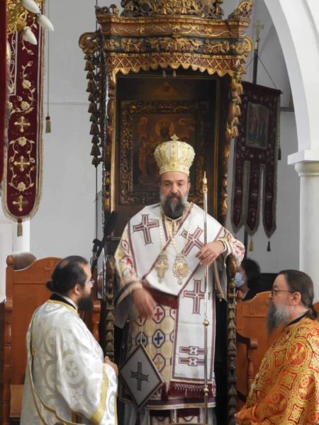 Την παραμονή της εορτής ο Σεβασμιώτατος Μητροπολίτης Θήρας Αμοργού και νήσων κ. Αμφιλόχιος χοροστάτησε στον πανηγυρικό εσπερινό, ευλόγησε τους προσφερθέντες άρτους και κήρυξε τον θείο λόγο λαμβάνοντας αφορμηση και ερμηνεύοντας θεολογικά το δοξαστικό του εσπερινού της εορτής.