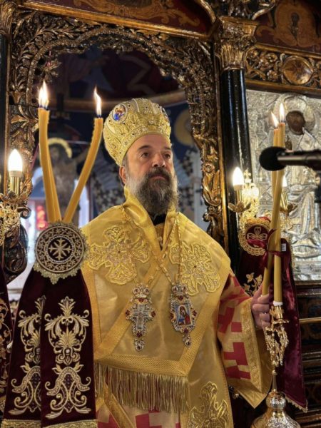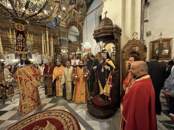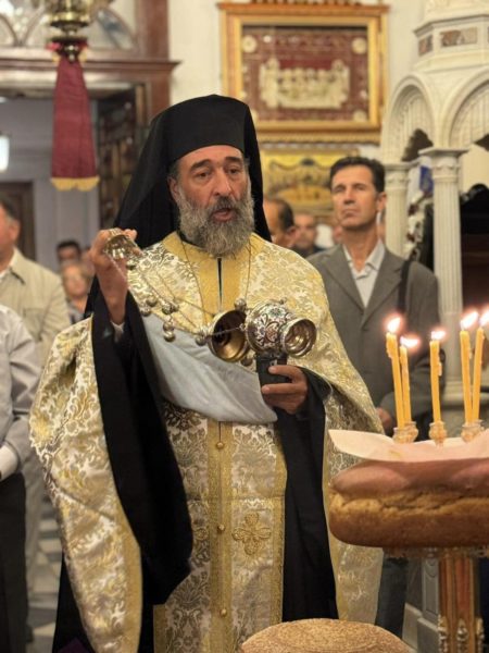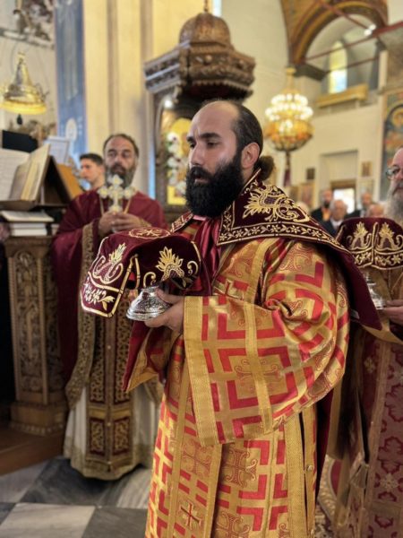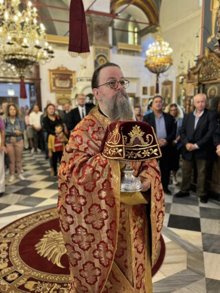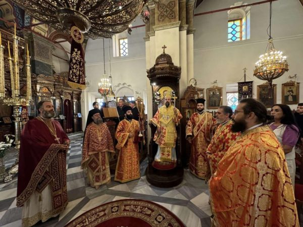 Ανήμερα της εορτής, ο Σεβασμιώτατος Ποιμενάρχης χοροστάτησε στην ακολουθία του Όρθρου και προεξήρχε του μυστηρίου της Θείας Λειτουργίας με τη συμμετοχή του Γενικού Αρχιερατικού Επιτρόπου της Ιεράς Μητροπόλεως πρωτοπρεσβυτέρου π. Νικολάου Σιγάλα, του ιεροκήρυκα αρχιμ. π. Ματθαίου Μπαρούση, ο οποίος εκήρυξε το θείο λόγο, των πρωτοπρεσβυτέρων π. Ευαγγέλου Φουστέρη (προϊσταμένου του Ναού και Αρχιερατικού Επιτρόπου Θήρας) και Χαραλάμπους Σαλιβέρου (Γραμματέως της Μητροπόλεως) ως και των ιεροδιακόνων π. Νεκταρίου Σάκκα και π. Ανδρέα Τσένκο.