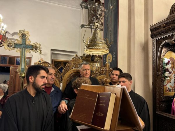 Προ του πέρατος της Θείας Λειτουργίας ο Σεβασμιώτατος χειροθέτησε σε Αναγνώστη τον ευλαβέστατο νέο κ. Ιωάννη Λιγνό και κατόπιν πραγματοποιήθηκε η λιτάνευση της ιεράς εικόνας του Αγίου Δημητρίου και ευλογήθηκε η παραδοσιακή πανήγυρις.